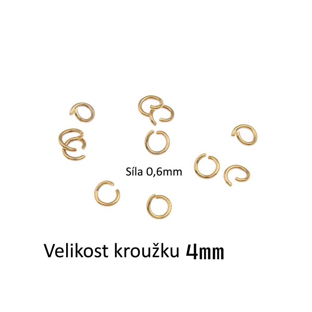 Otevřený spojovací kroužek 4 x 0,6mm ZLATÁ galvanizace z chirurgické oceli