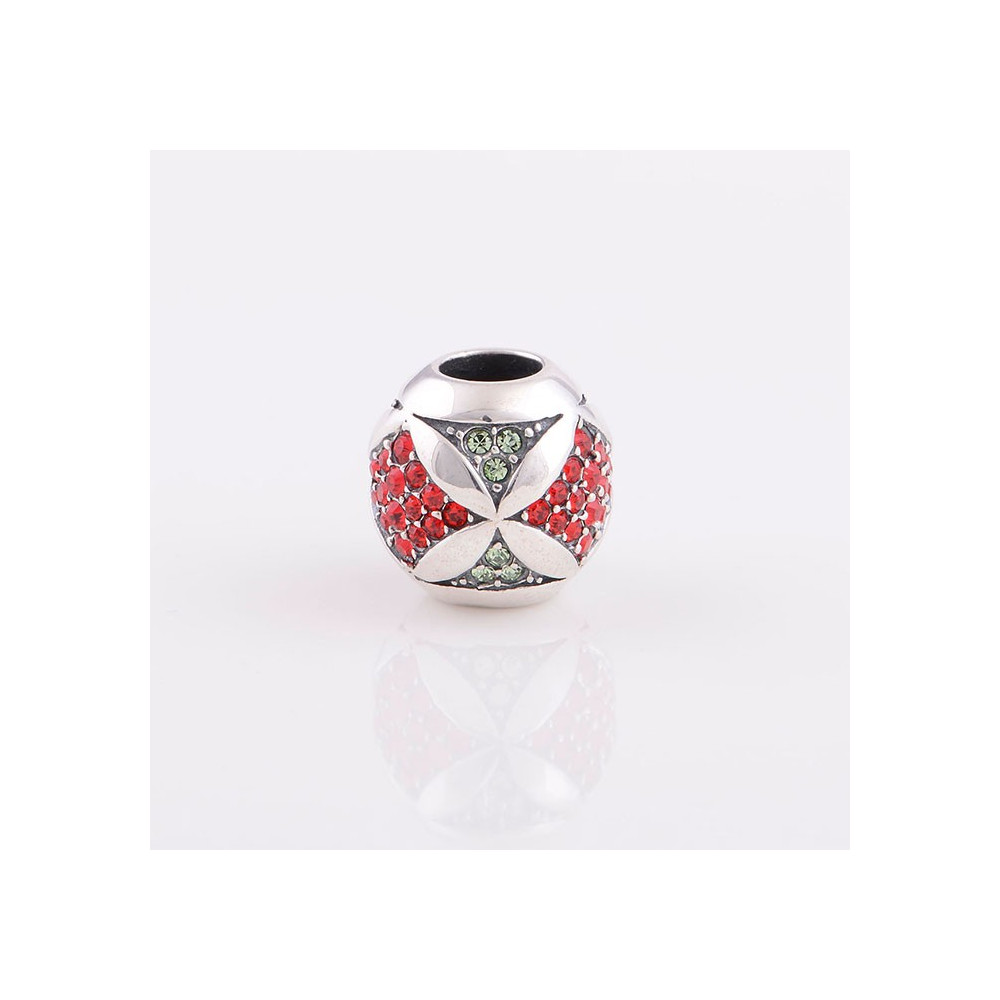 Bead AG 925 with Light Siam and Chrysolite Rhinestones