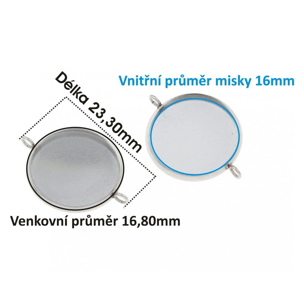 Bowl ConnectorMaterial: Surgical SteelDimensions: 23x18mm, Bowl Height: 2mm Bowl Diameter: 16mm