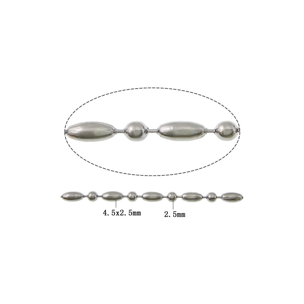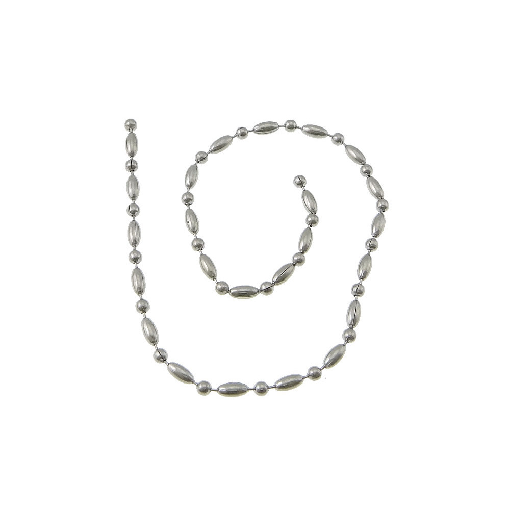 Decorative ball chain with oval beads made of high-quality 304 stainless steel. The chain features an elegant alternating pattern of smooth oval “olive” beads and round metal balls, creating a modern and stylish look.