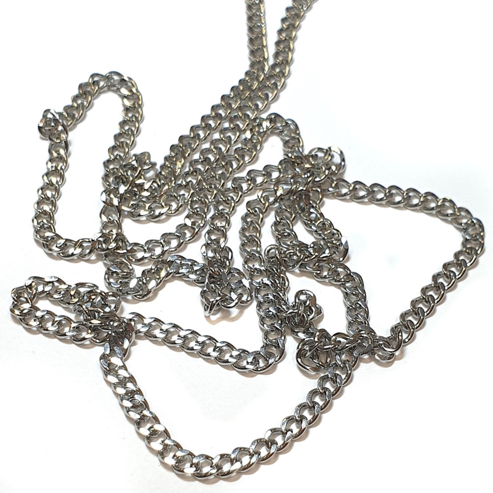High-quality diamond-cut curb chain made of durable 304 stainless steel. The faceted, polished surface reflects light beautifully and creates an elegant sparkling effect.