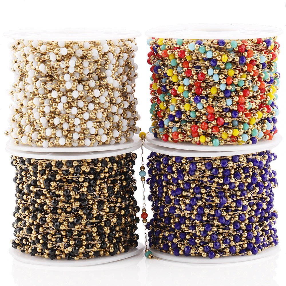 Chain with beads, 4 color variants, surgical steel, gold galvanization