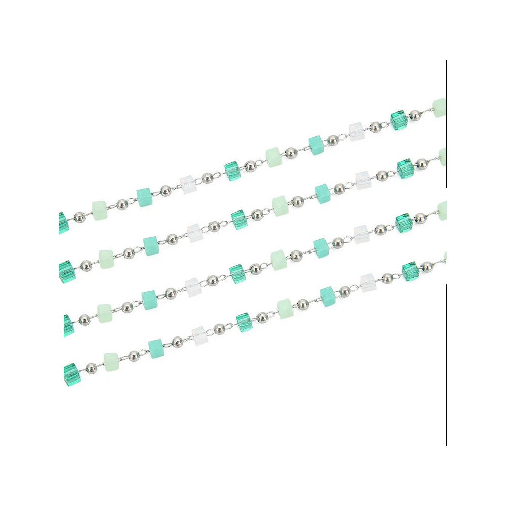 Chain fabric, beads, cubes in a mix of mint colors, surgical steel