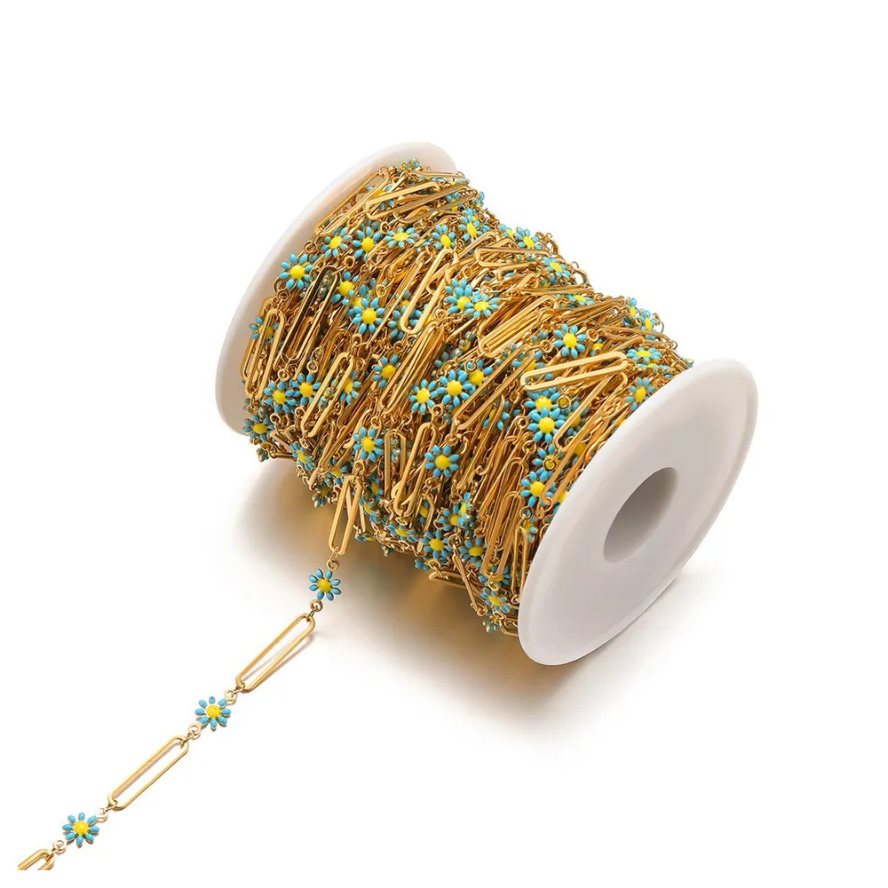 Paperclip Chain with Enamel Flower Links – Gold Plated Stainless Steel