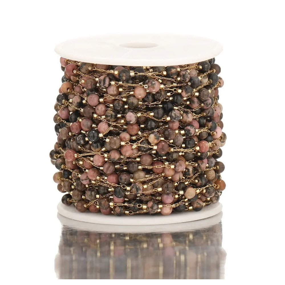 Chain with mineral beads gold galvanization surgical steel