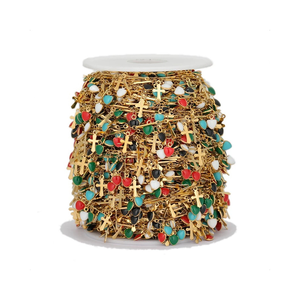 Chain link with enamel, surgical steel, three color combinations
