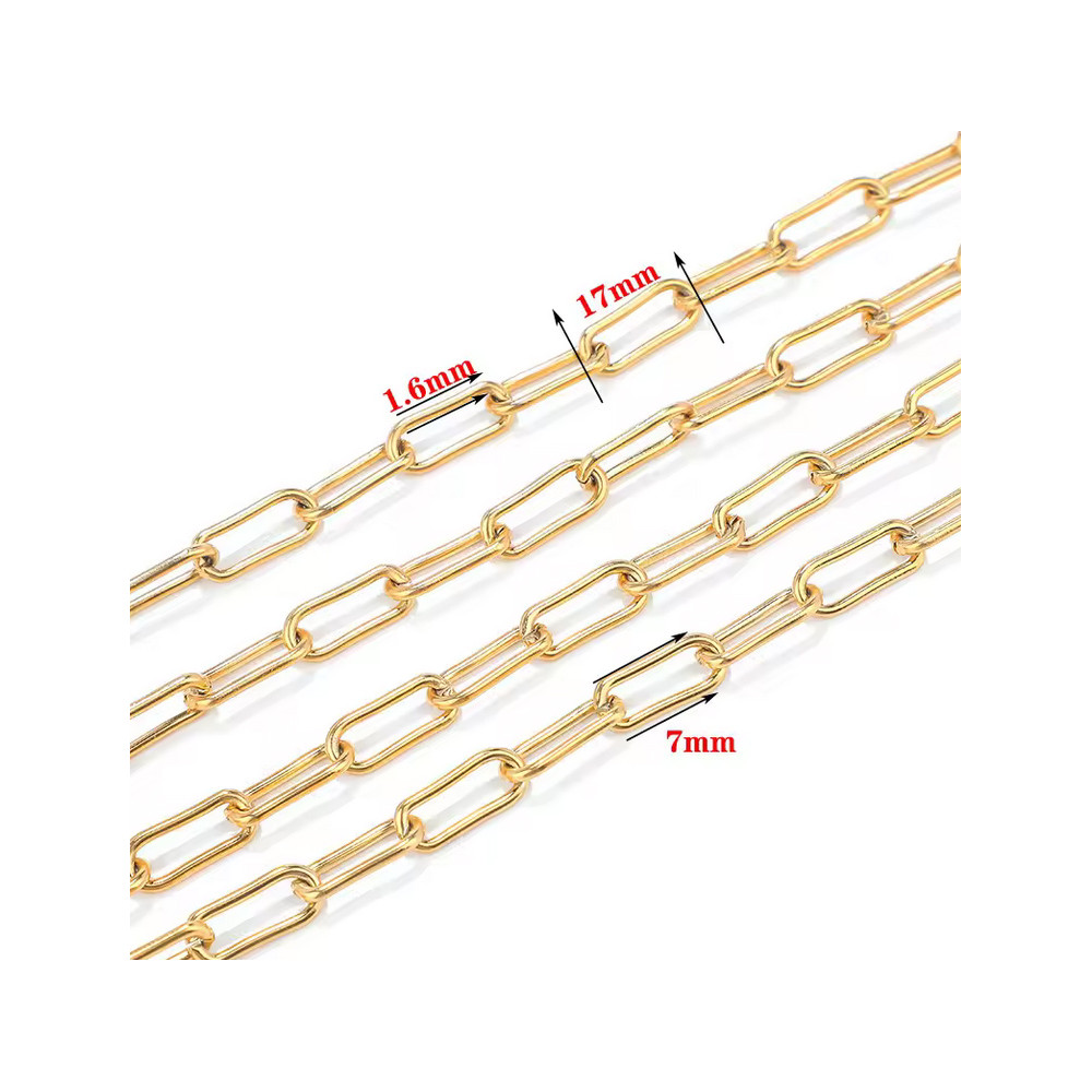 Paperclip Chain 17 × 7 mm or 13 x 7mm | 304 Steel gold plated