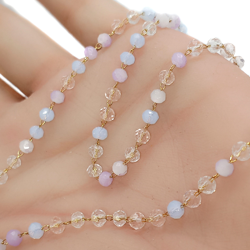 Chain link with fireflies blue-green mix surgical steel gold galvanization