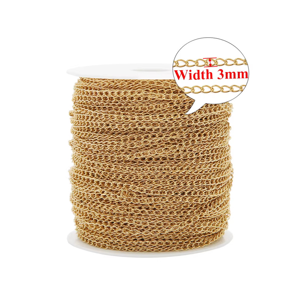 Smooth curb extension chain fabric made of high-quality 304 stainless steel with an elegant gold electroplated finish. This chain is ideal for necklace extensions, bracelets, pendants, and modern DIY jewelry projects.
