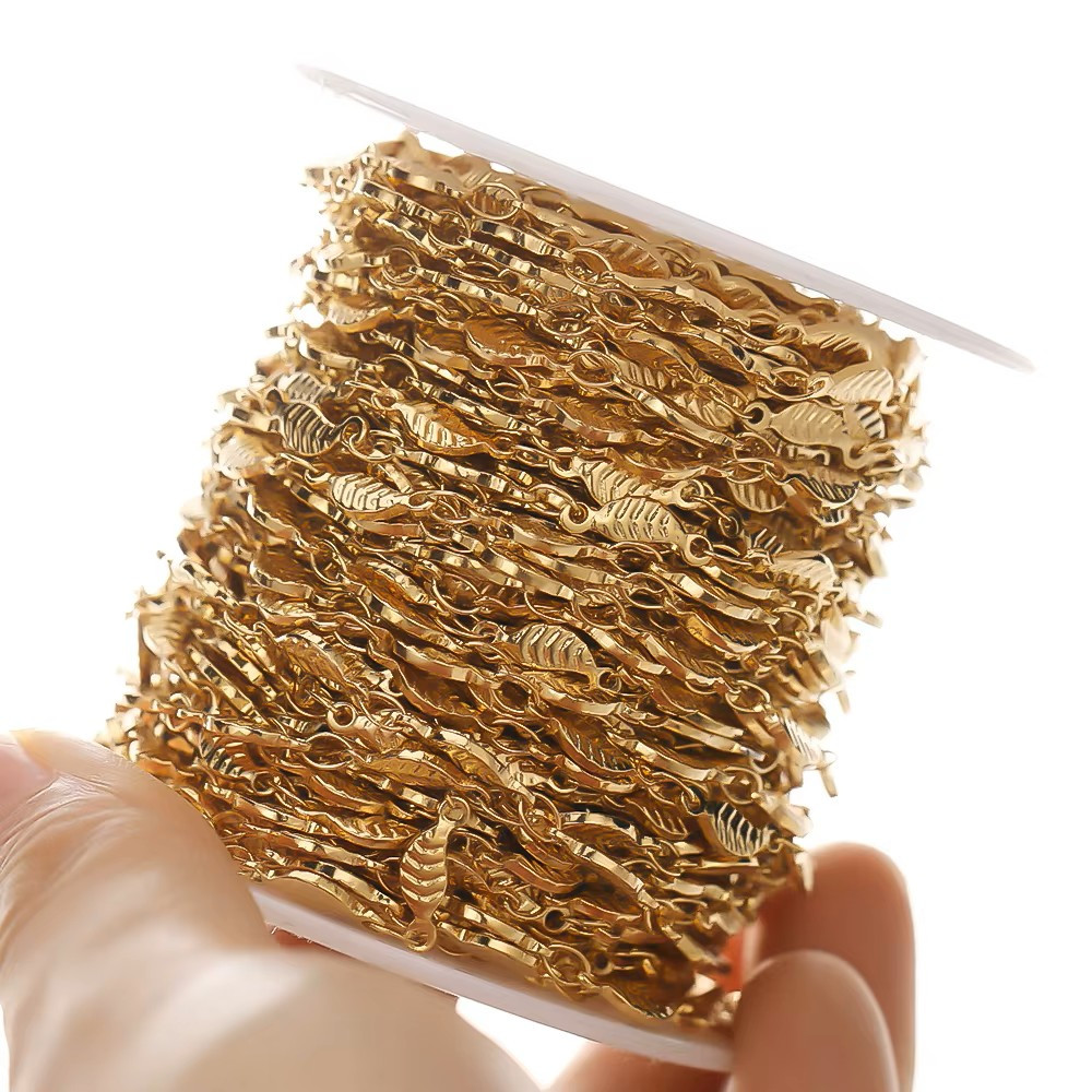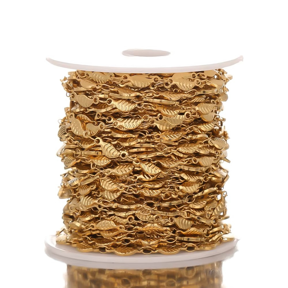 Delicate decorative chain featuring evenly spaced leaf-shaped links that bring a light, natural, and elegant look to jewelry designs. Thanks to the small connector rings, the chain is suitable for creating necklaces, bracelets, and other jewelry pieces where it can stand out as the main decorative element.