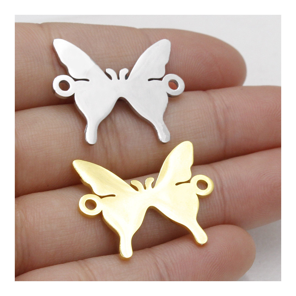 Bow tie connector in two color variants of surgical steel