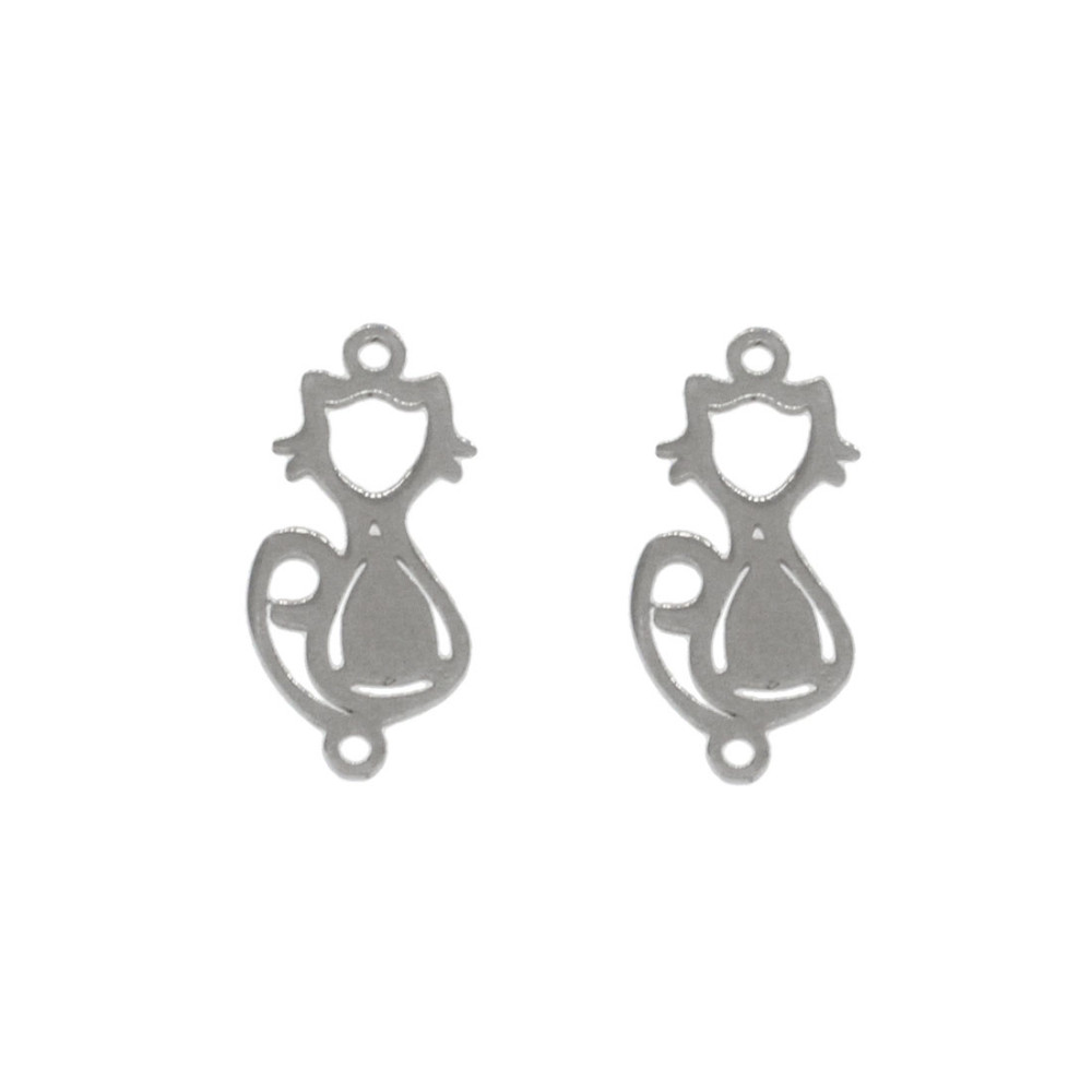 Cat pendant in two colors of surgical steel