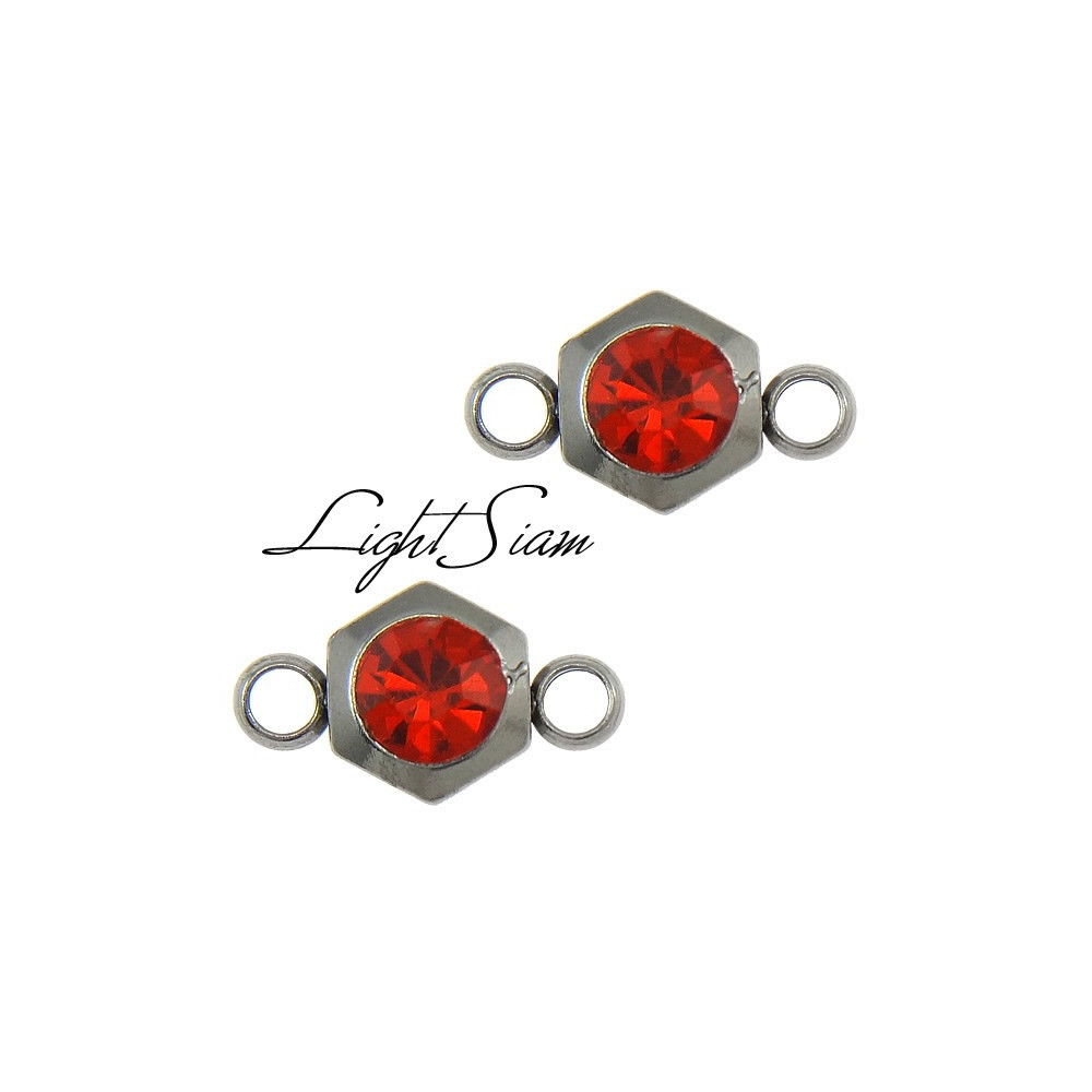 Circle-shaped bowl connector with Crystal Capri gold chaton made of surgical steel