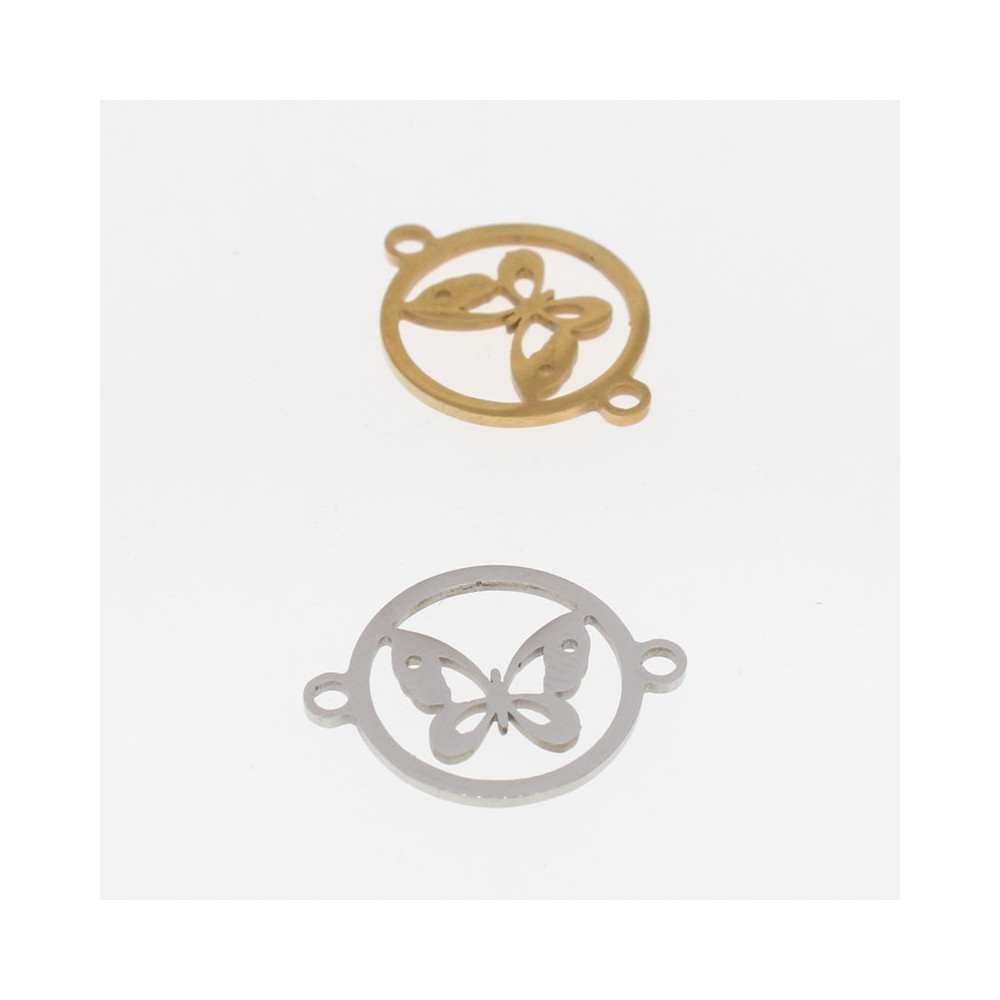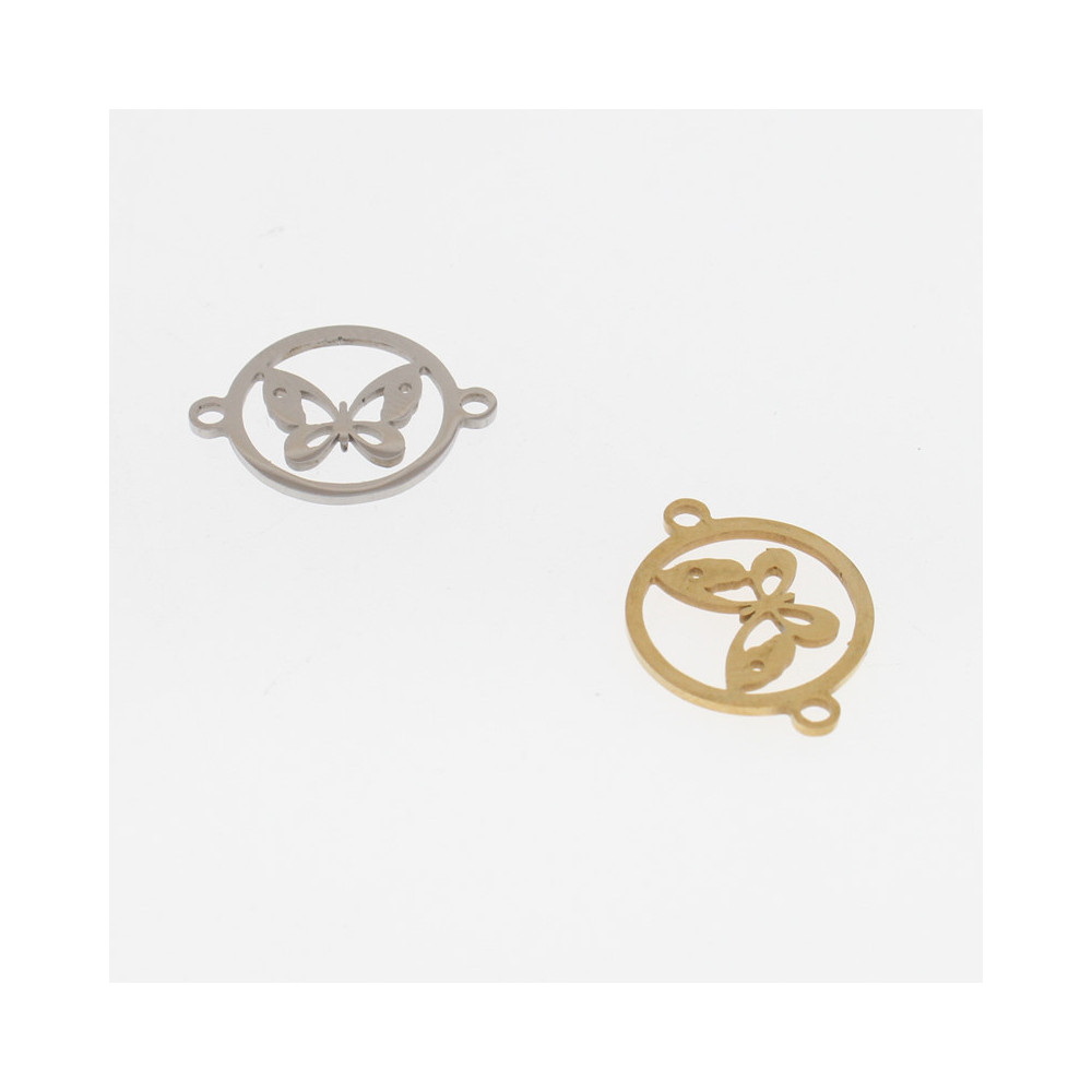 Surgical steel bow tie connector in two color combinations