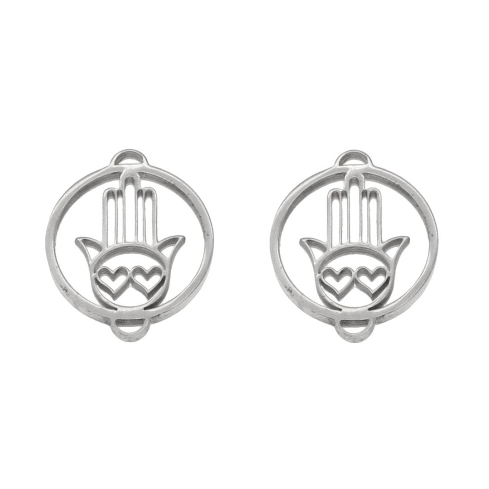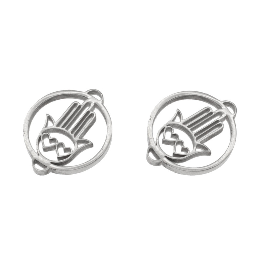 Hamsa connector with surgical steel hearts