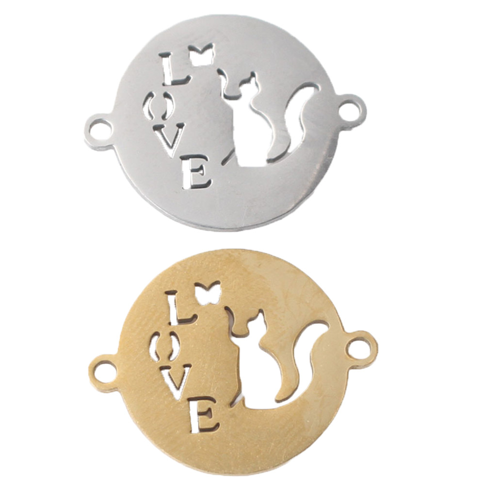 Connector patty with the inscription Love in two color combinations made of surgical steel
