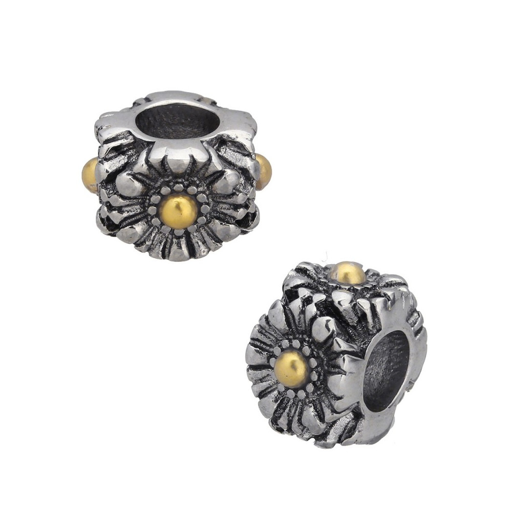 Bead flower in three colors of surgical steel