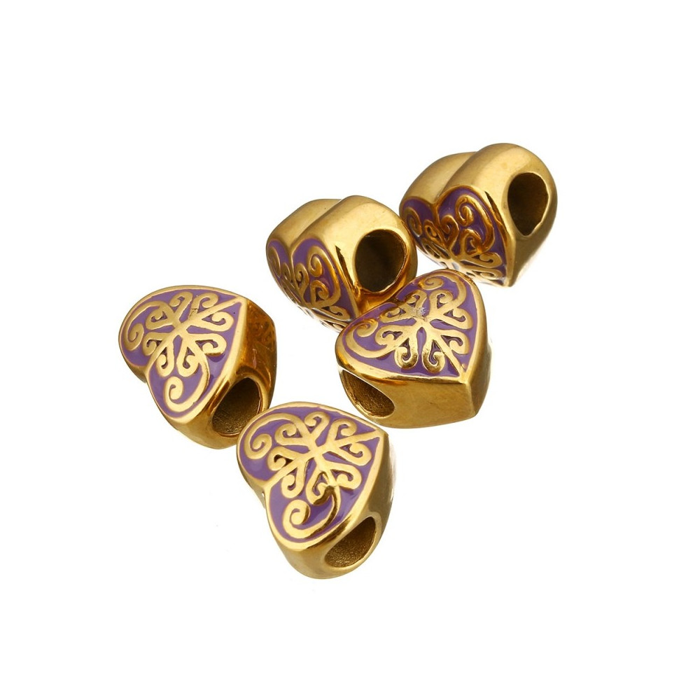 Gold-plated bead heart and purple surgical steel enamel