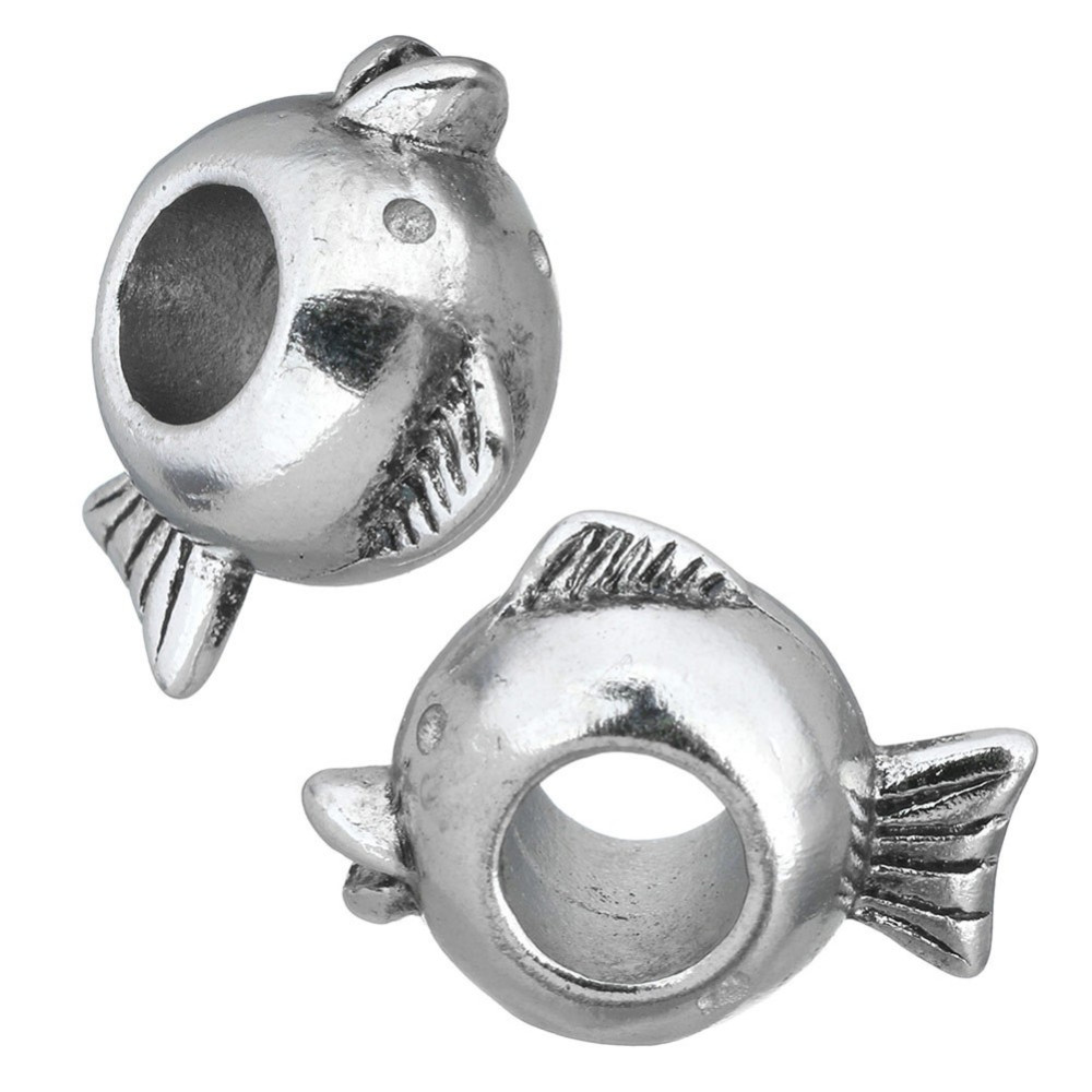 Bead decorated with leafs made of surgical steel