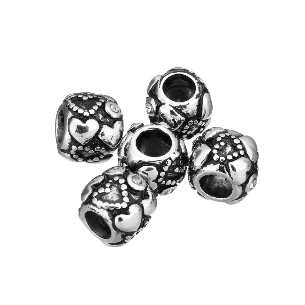Surgical steel bead with hearts