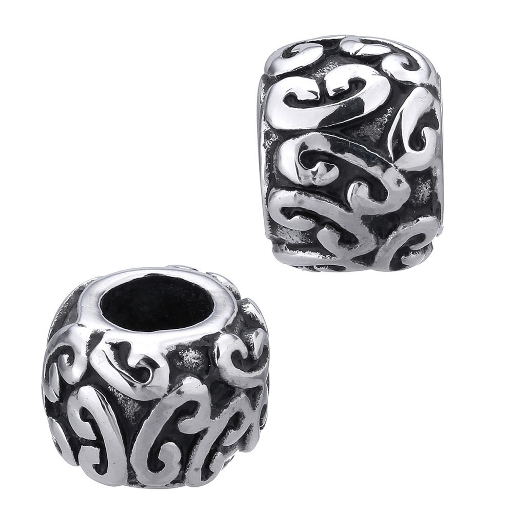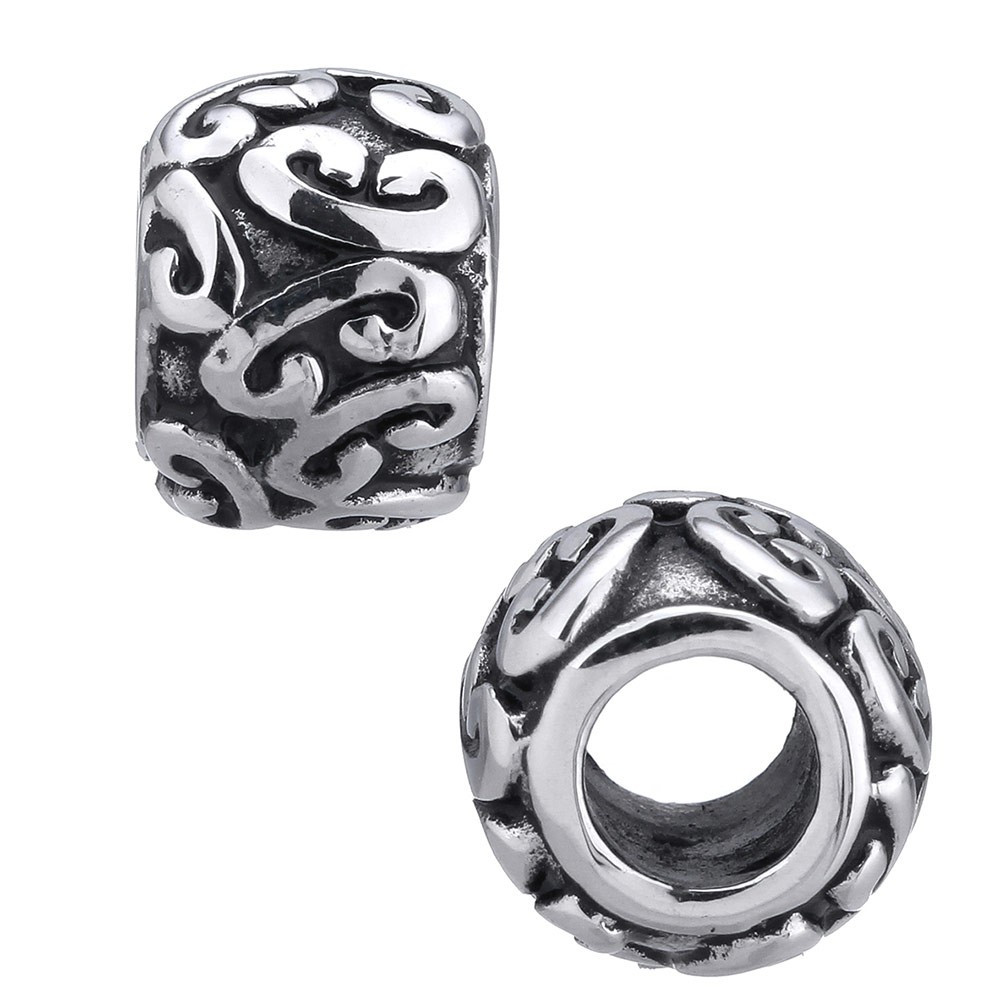 Bead small, cut, carved stainless steel tube