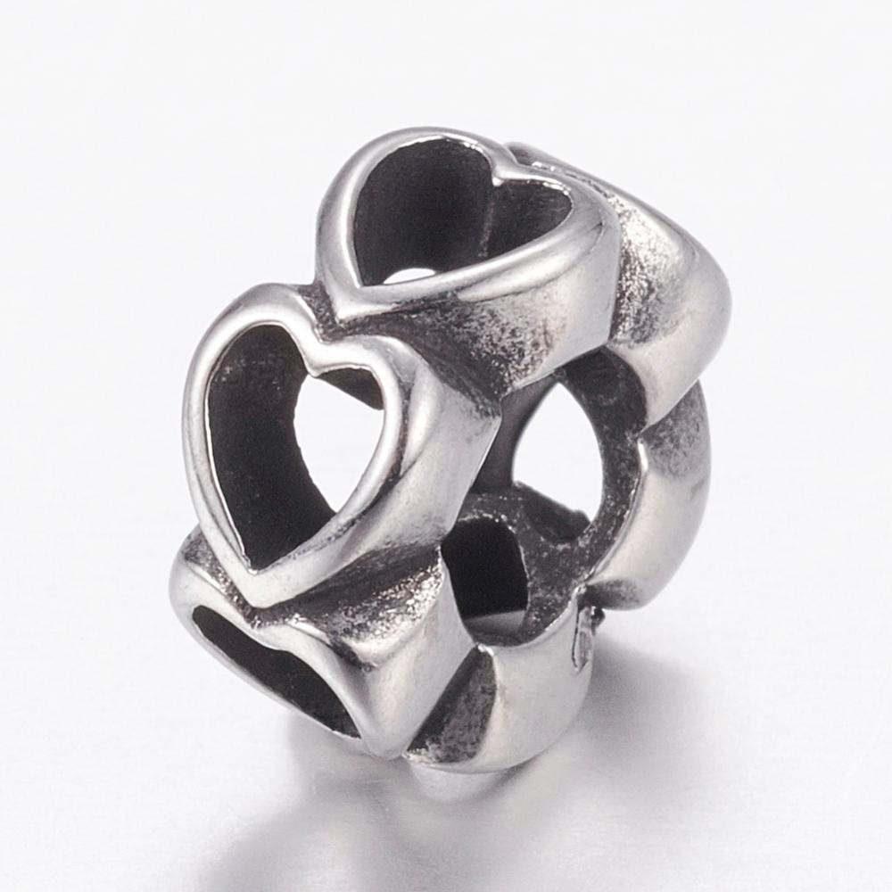 Bead polished heart with inscription Beloved and pink rhinestone surgical steel