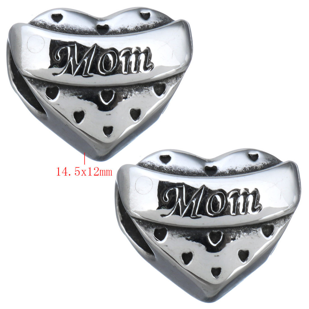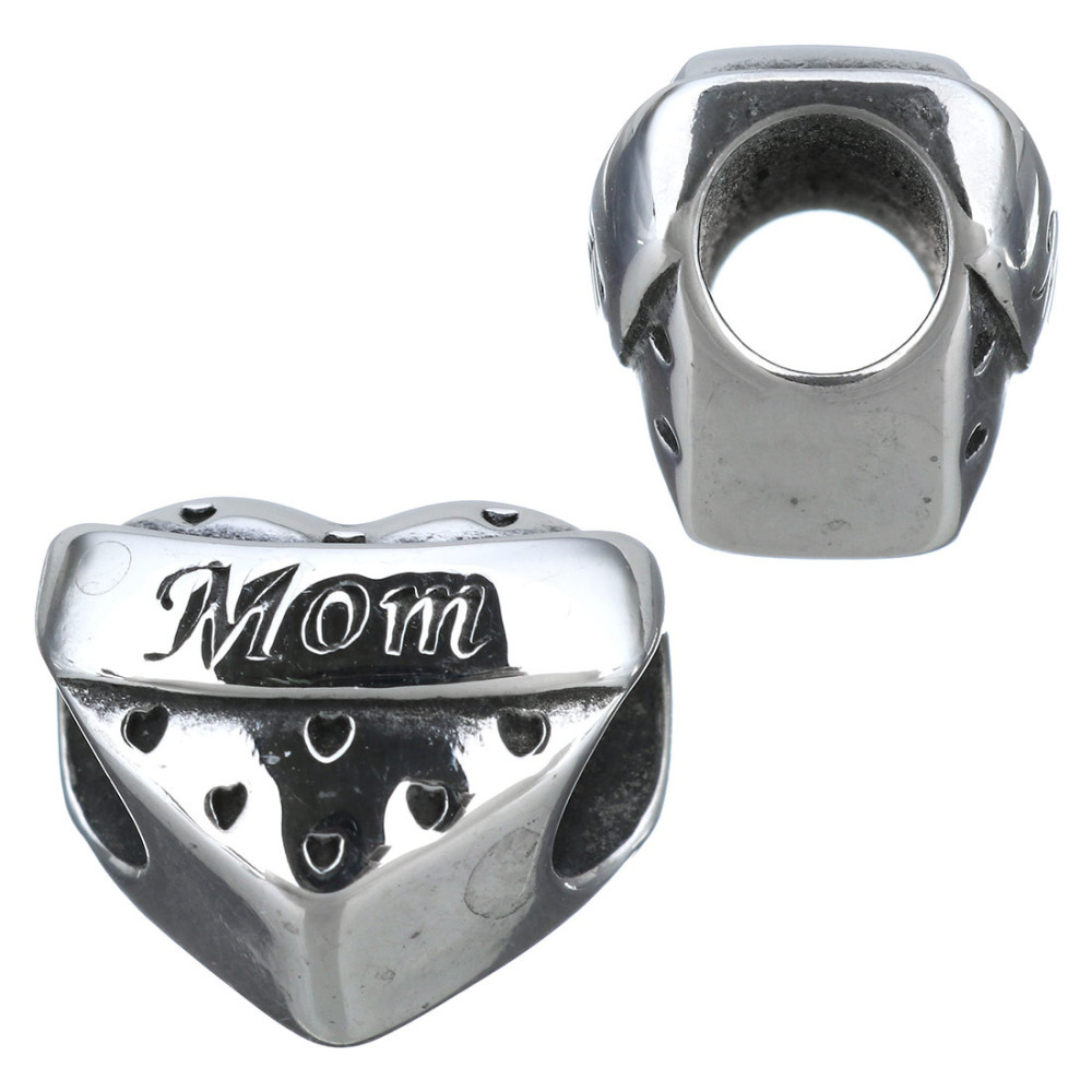 Bead heart with lettering Mamma, Mum, Mama from surgical steel