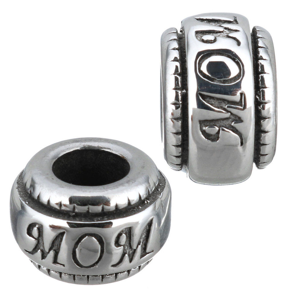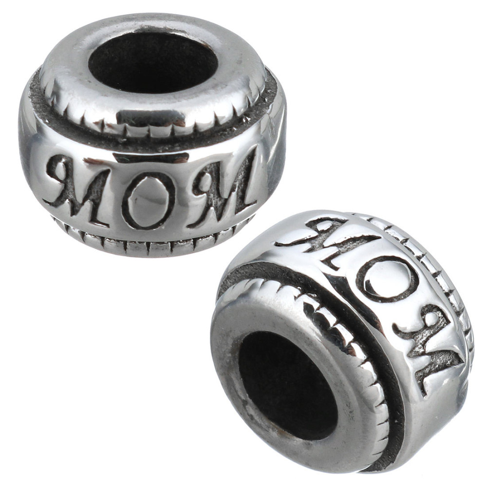 Surgical steel bead with inscription MOM