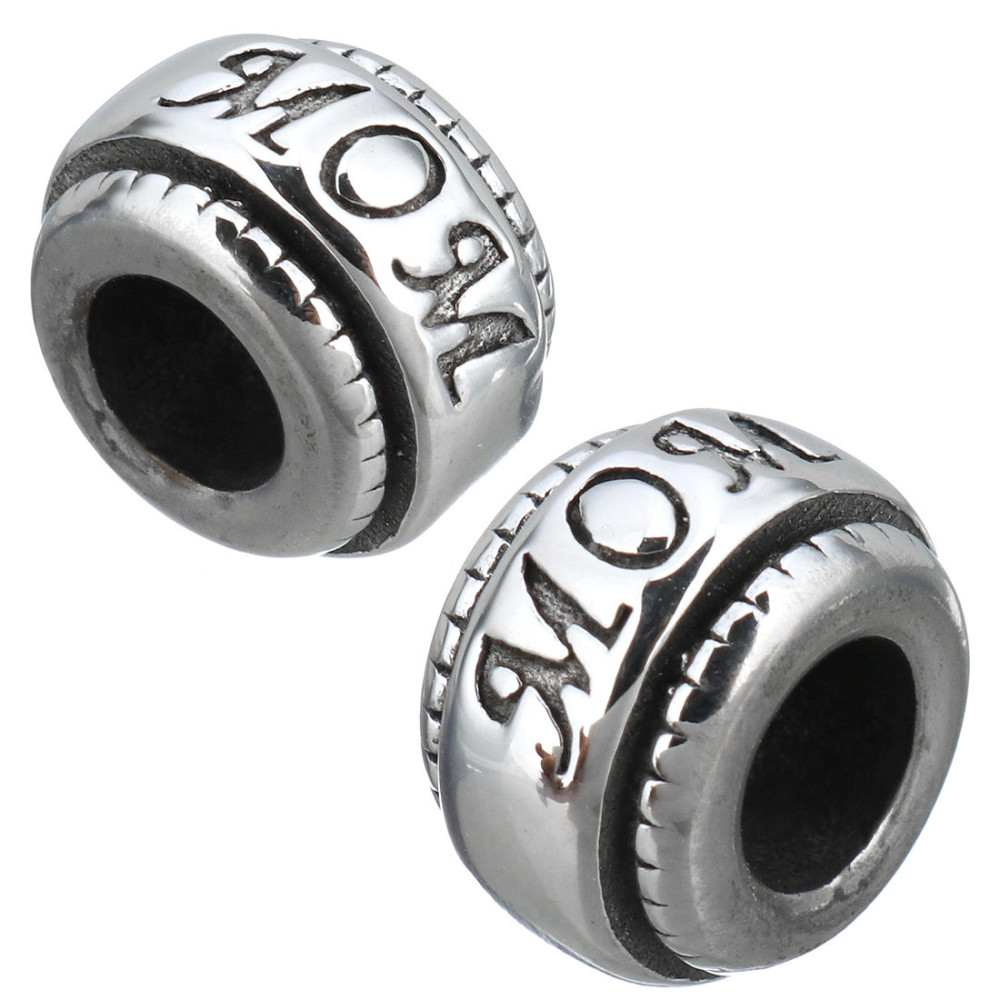 Large bead decorated with horizontal figure eight surgical steel