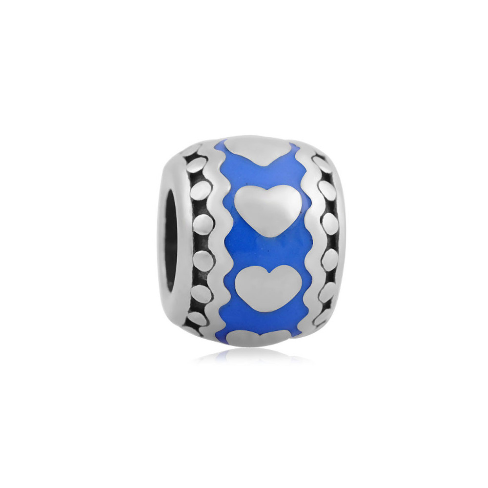 Bead with colored enamel and silver heart in the middle