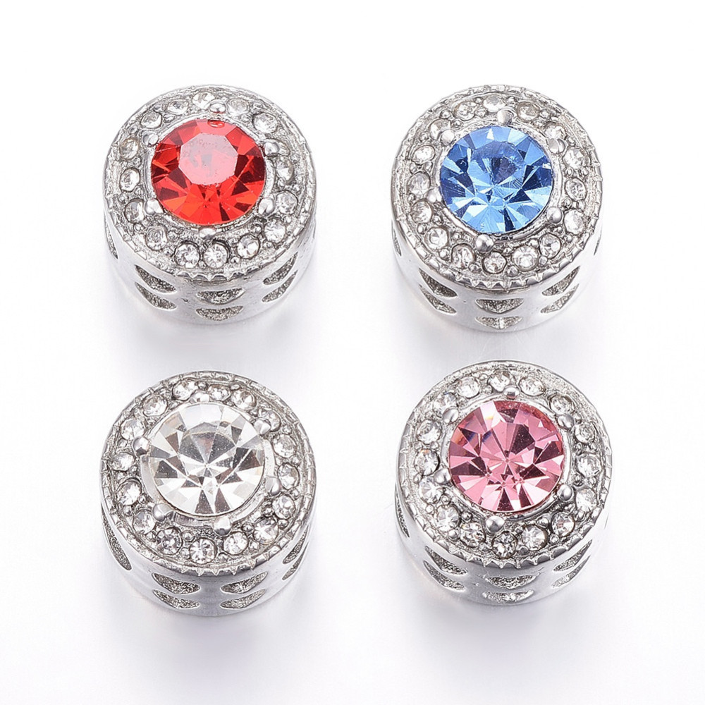 Pink enamel bead made of surgical steel Gilded white enamel bead