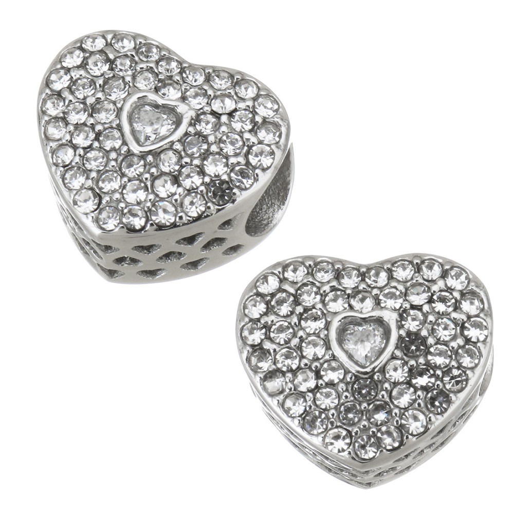 Heart bead with surgical steel chatons