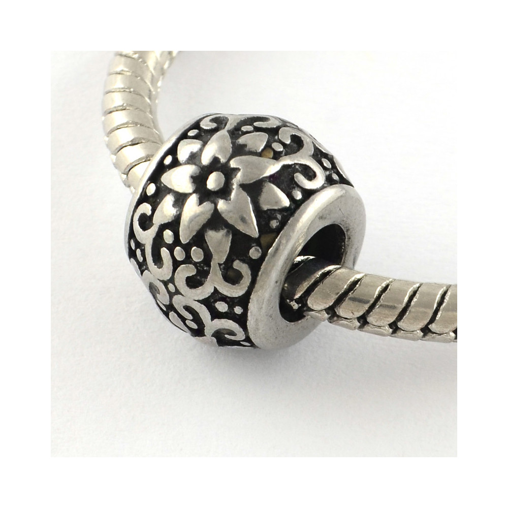 Heart bead with ornaments and golden rhinestone galvanized surgical steel