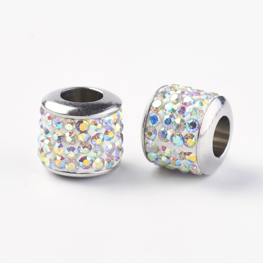 Surgical steel bead with rhinestones and polymer selection of many colors