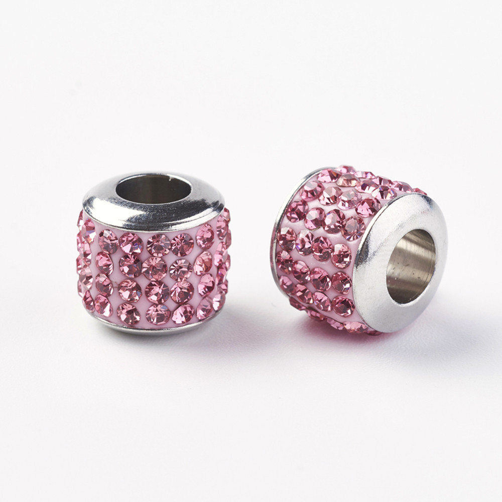 Surgical steel bead with rhinestones and polymer selection of many colors