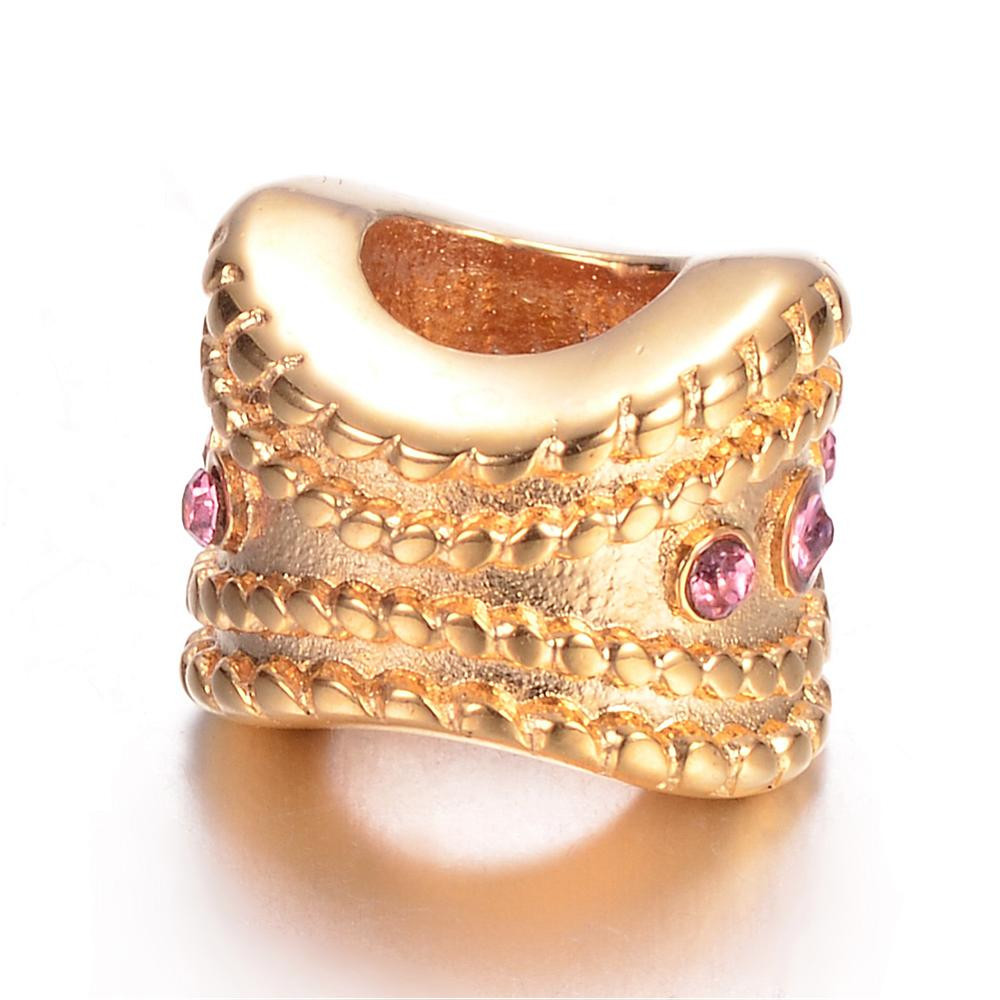 Bead with pink stone in two color variants of surgical steel
