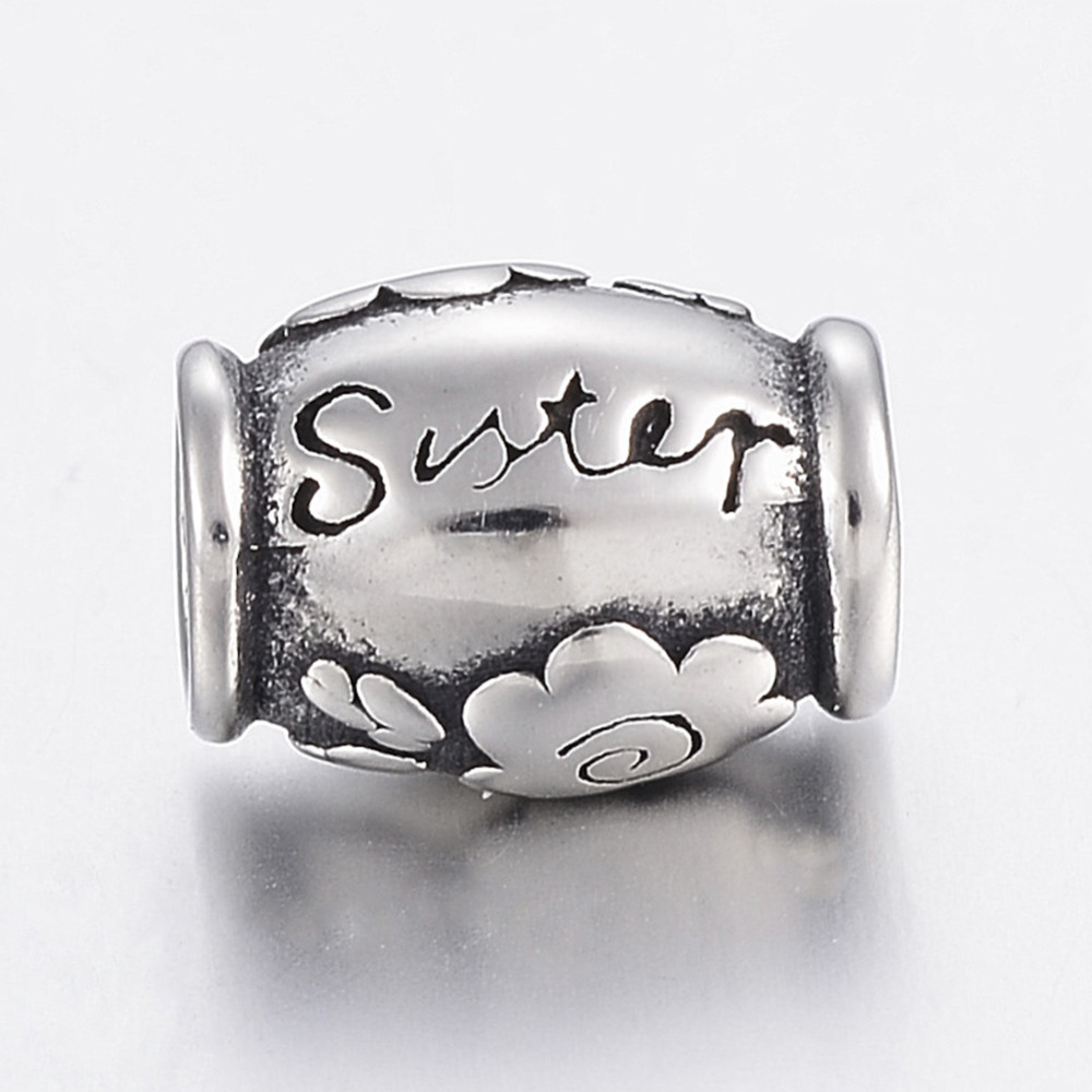 Bead with inscription Sister of surgical steel