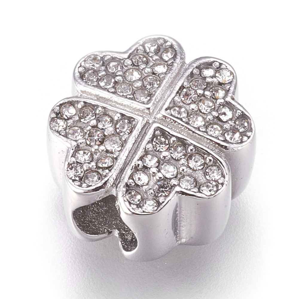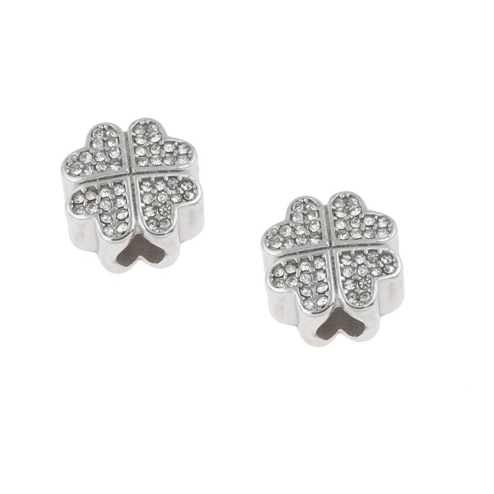 Paw-shaped bead decorated with rhinestones made of surgical steel