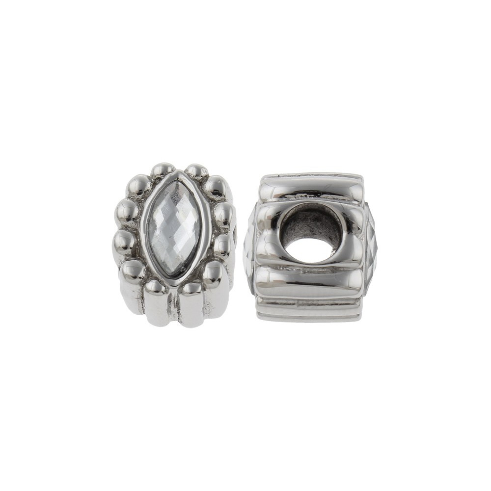 Large bead with crystal stoneMaterial: surgical steelZirconia color: CrystalDimensions: 12 x 9.80 x 8.70mmCurl: approx. 5mmWeight: 4.580g / piece