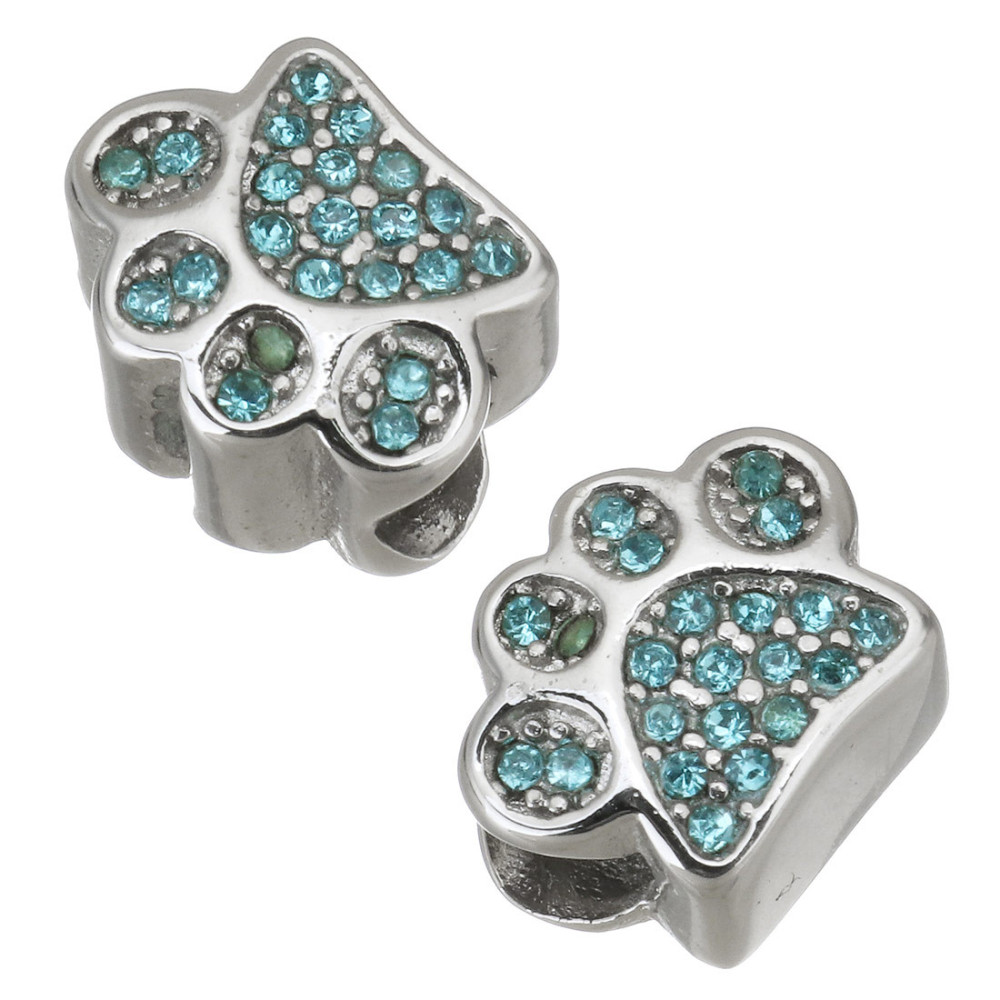 Paw-shaped bead decorated with rhinestones made of surgical steel