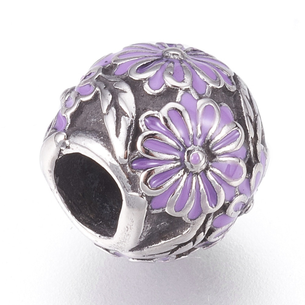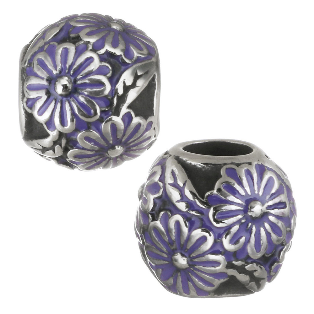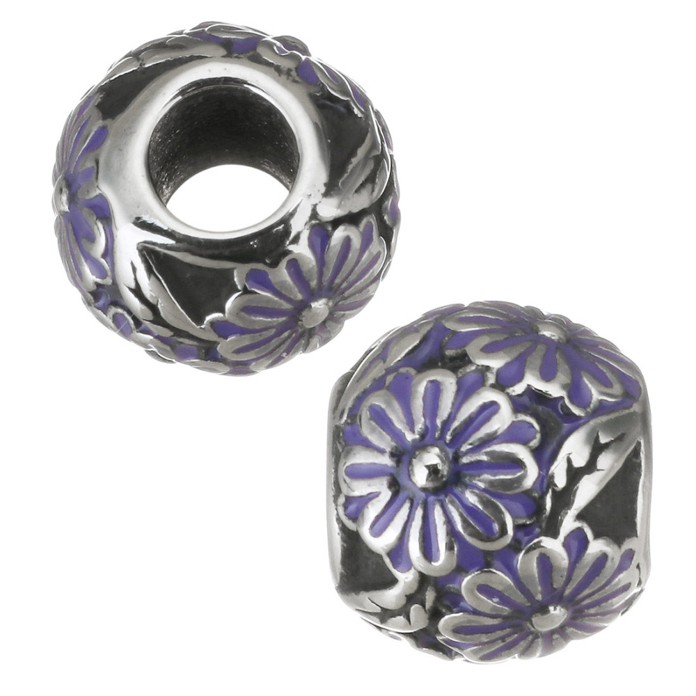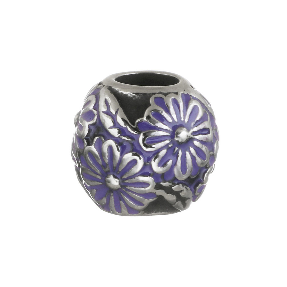 Bead with purple enamel flower made of surgical steel