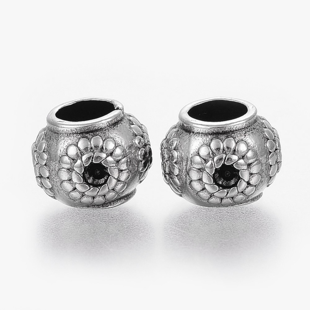 Bead with a flower antique silver patina surgical steel