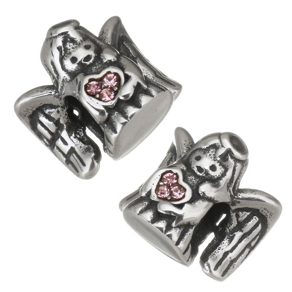 Angel bead with pink heart surgical steel