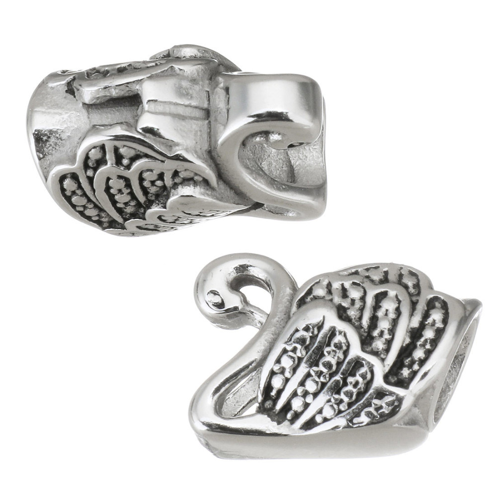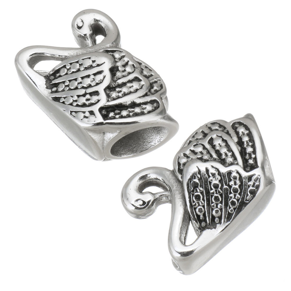 Bead polished heart with inscription Beloved and pink rhinestone surgical steel