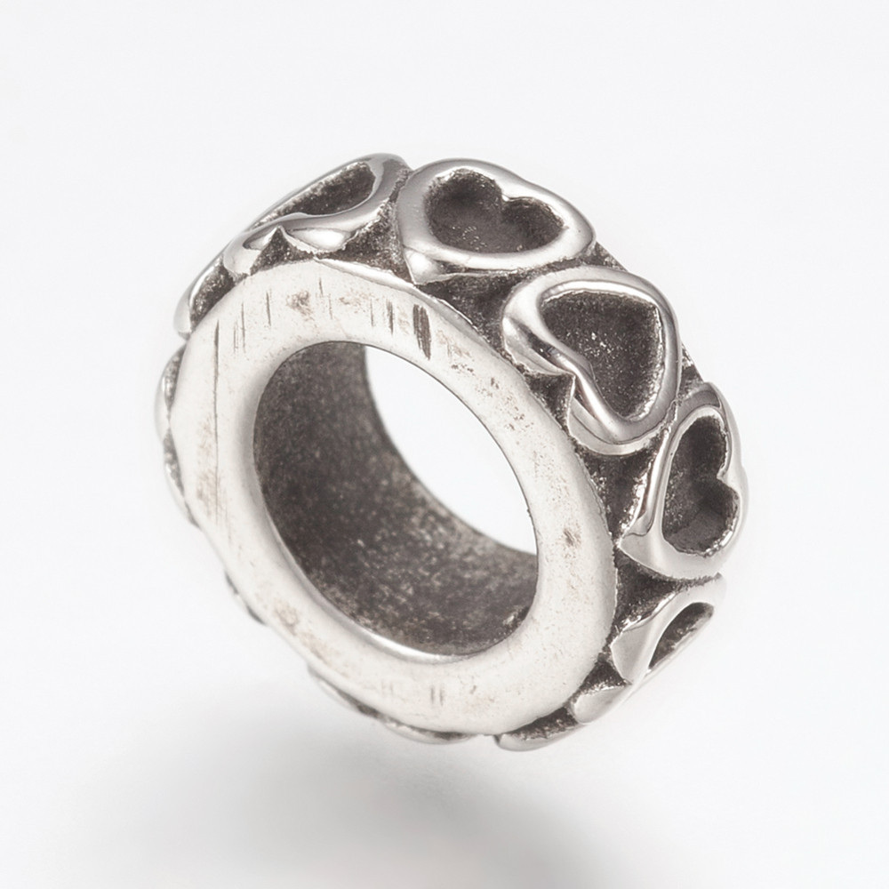 Bead with heart ornament of surgical steel
