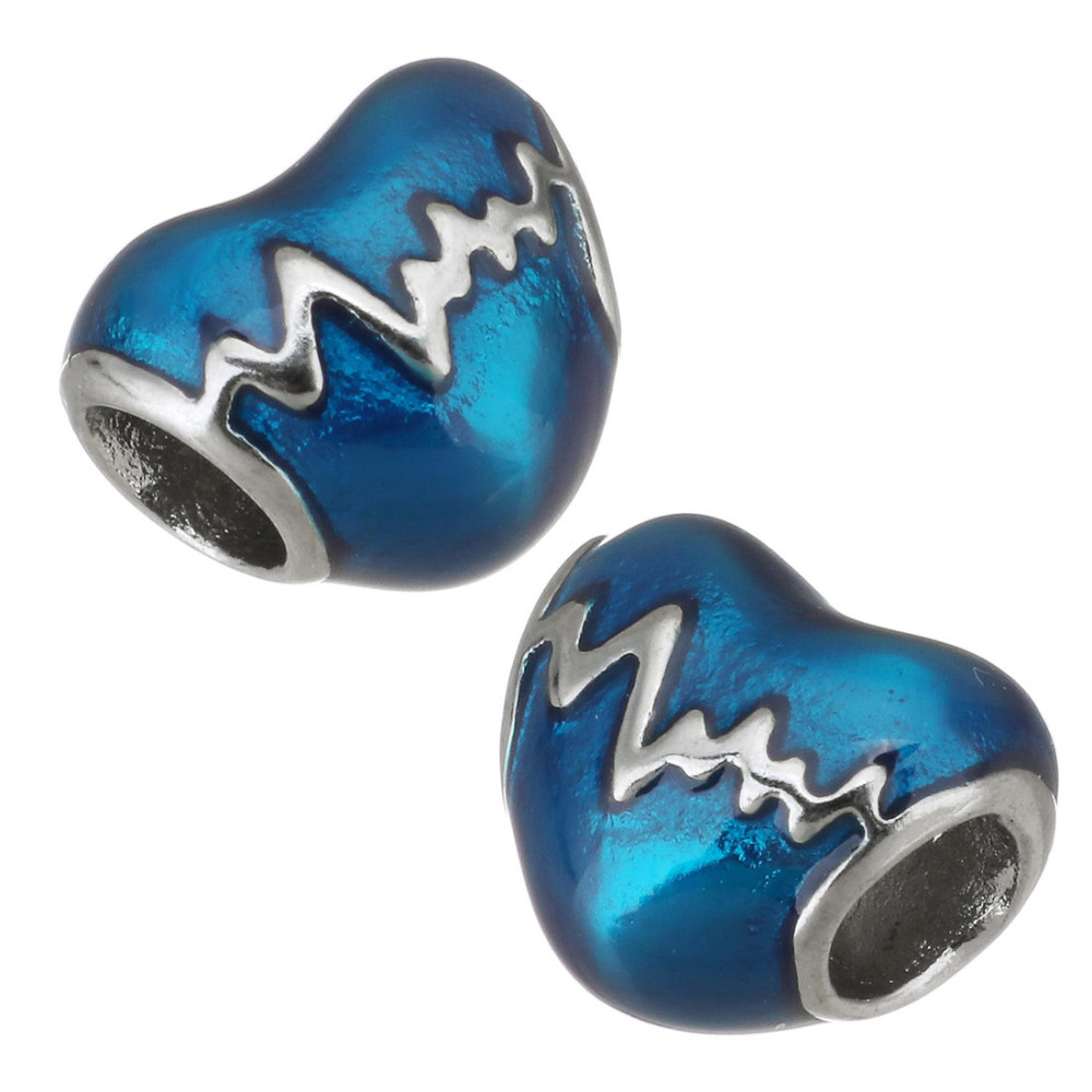 Bead enamel heart cardiograph from surgical steel