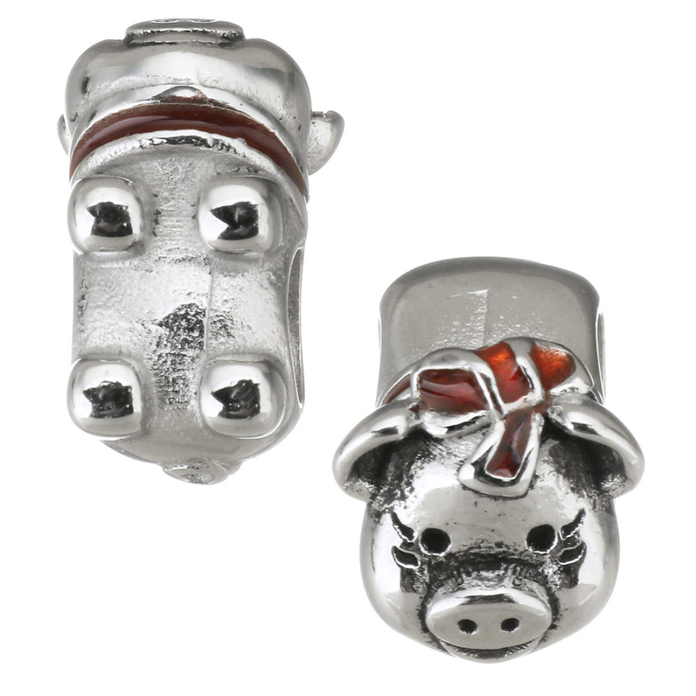 Bead with depicted family made of surgical steel two color variants