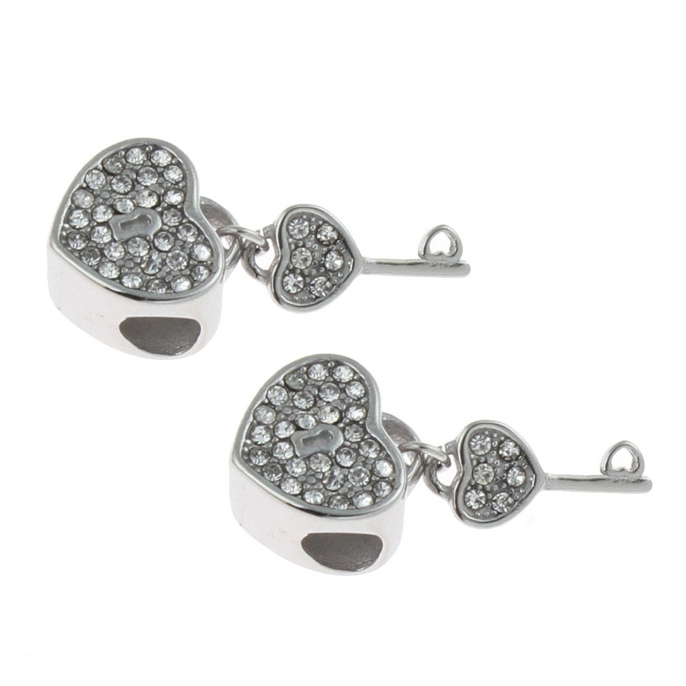 Heart bead with crystal chatons with a surgical steel key