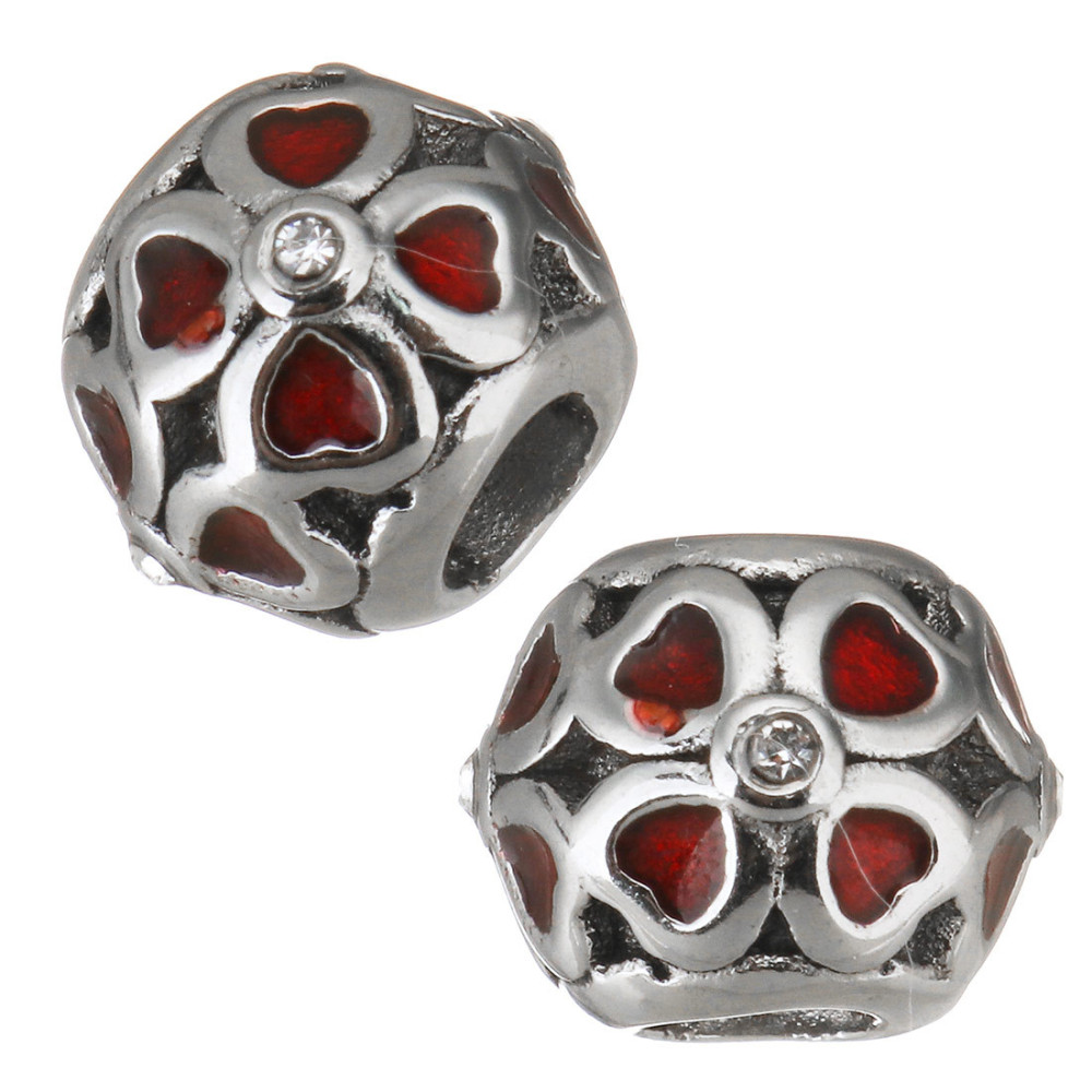 Bead with large four-leaf clover with red enamel and chaton