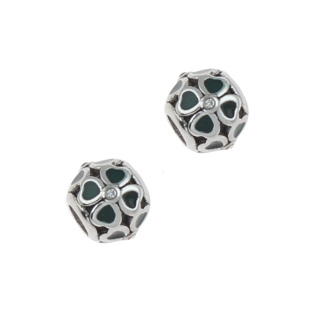 Bead with large draw-through cut bow tie with pink enamel surgical steel